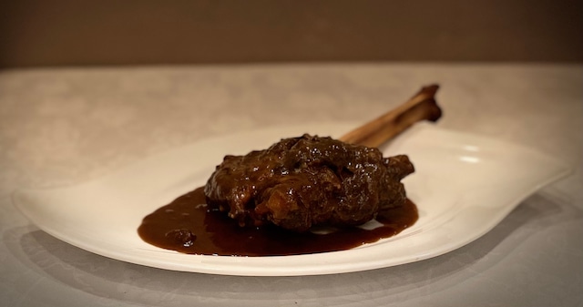 今回ホンドジカを一頭仕入れた為、前足と後ろ足4足をアグロドルチェの味付けで煮込みました。